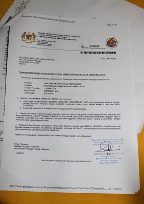 After he passed his SPM he worked at Kencana Petroleum before he continued his studies at Polytechnic Ungku Omar at the end of 2006. At present he is working as a technician at MTU but he has been offered to do a diploma in mechanical engineering course at Polytechnic Ungku Omar. He has decided to further his education and came to school today to get Ustaz Lotpi to certify some of his documents.